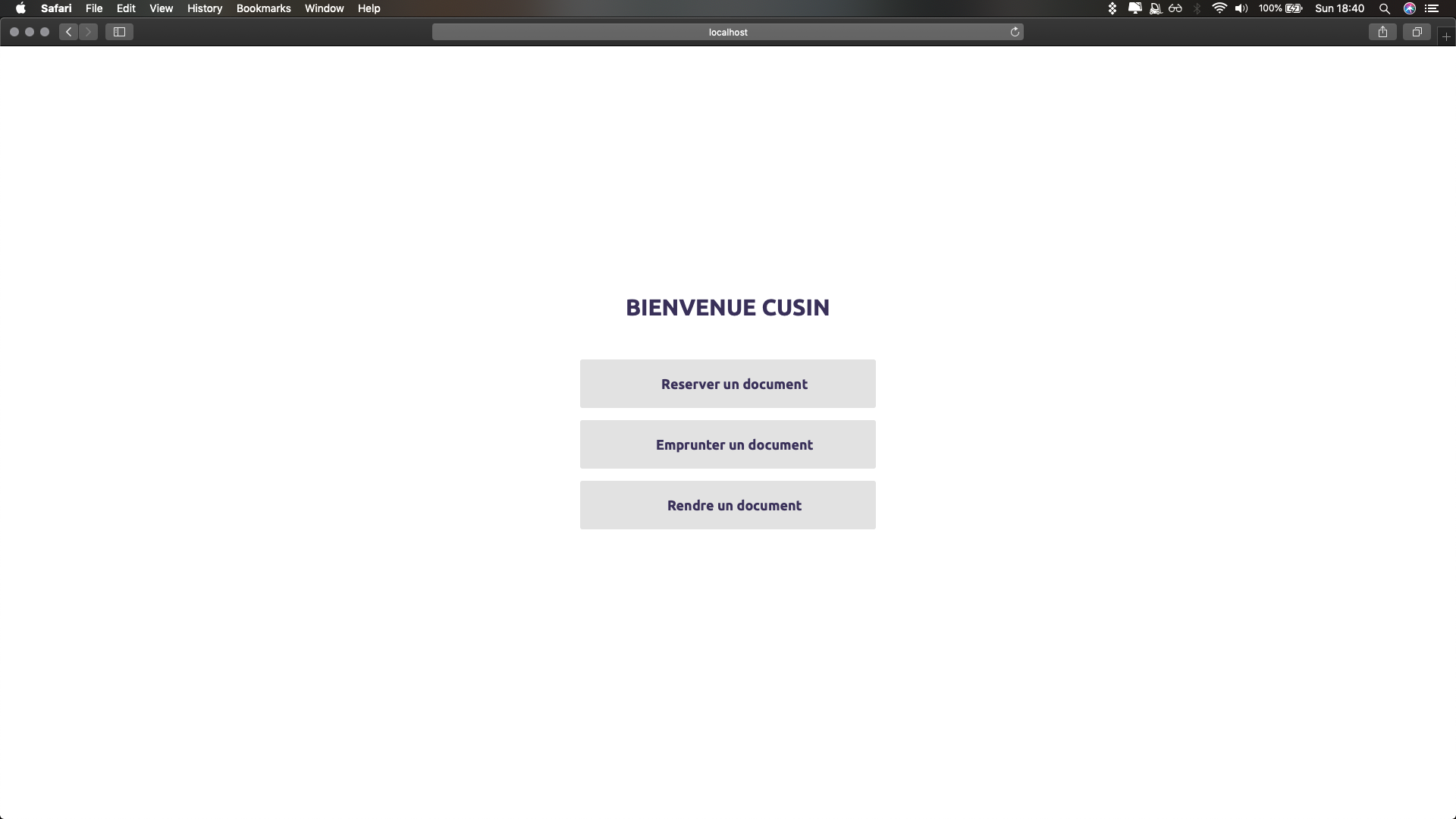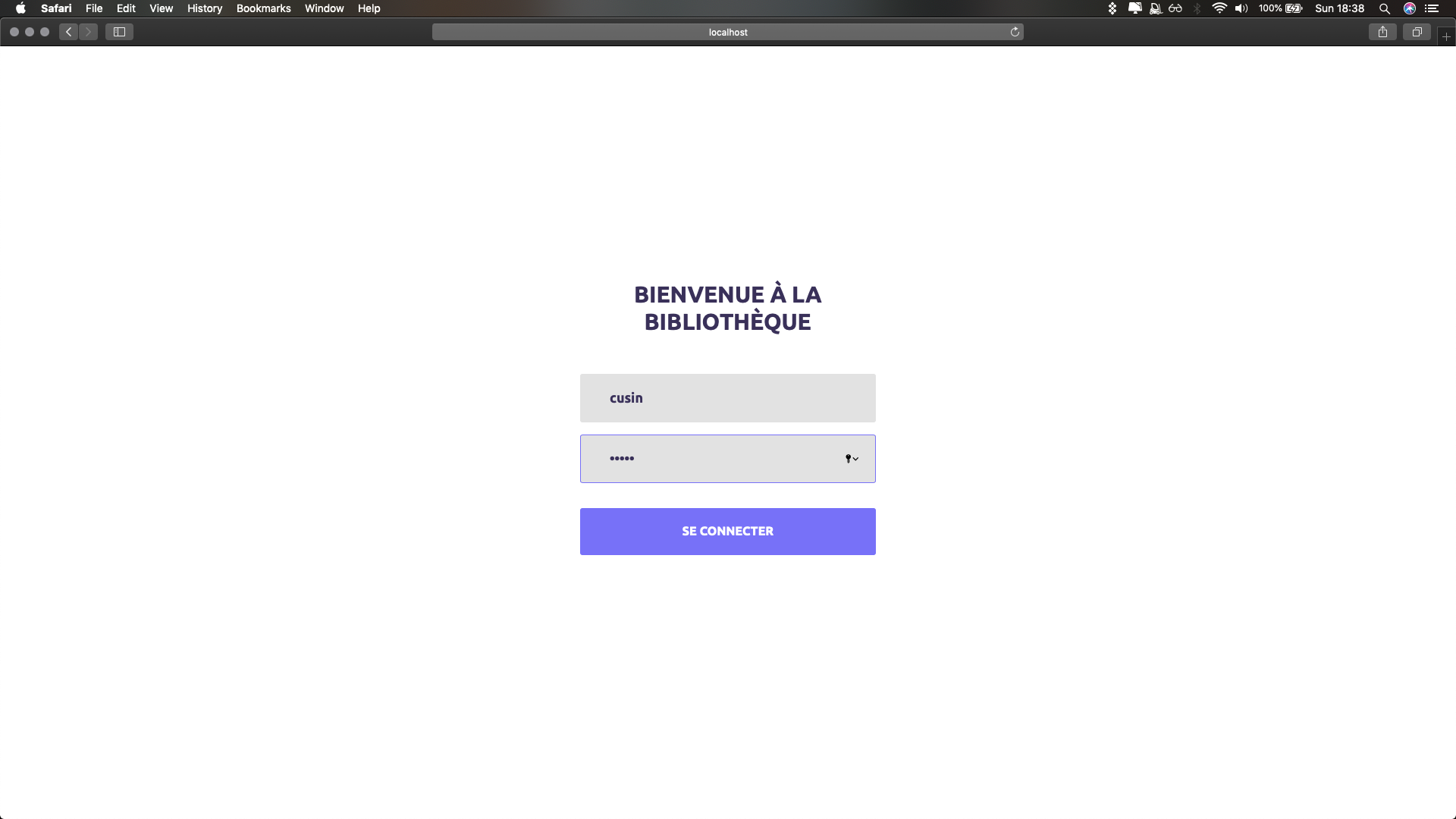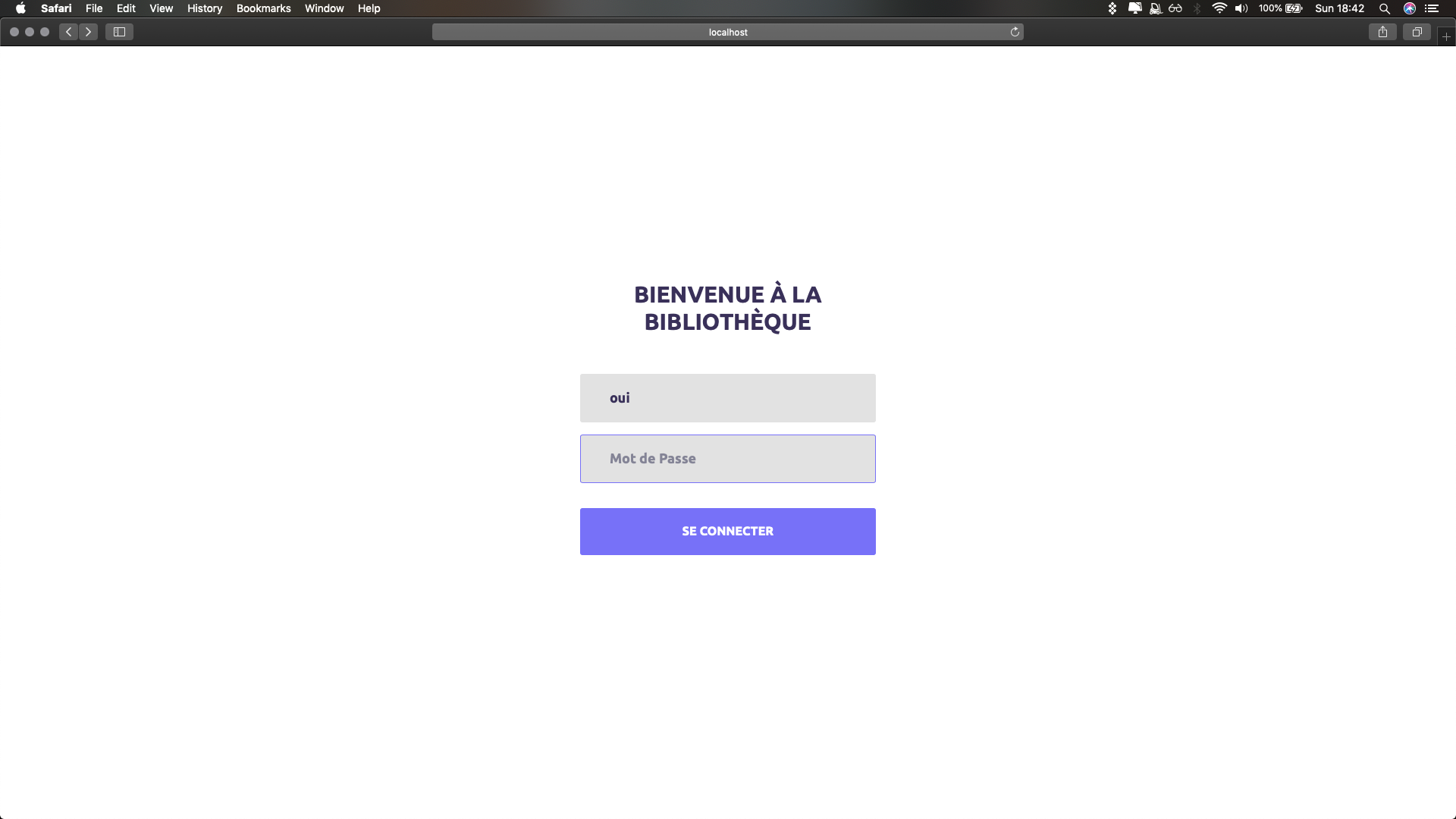 1) Connexion Bibliothécaire (username: oui, password: non)