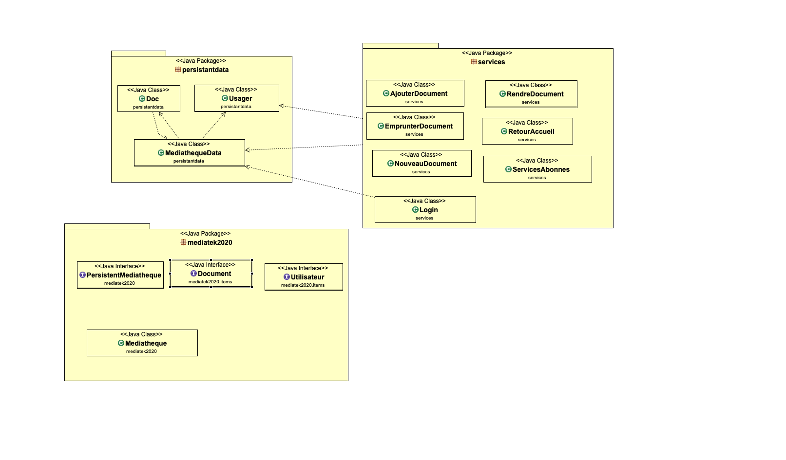 persistance.MediathequeData s’auto-déclare à mediatheque.PersistantMediatheque par injection de dépendance en appelant setData dans son bloc static.